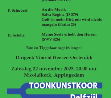 Zaterdag 25 november 2023 voeren wij traditiegetrouw ons najaarsconcert uit in de Nicolaïkerk in Appingedam. Wij zingen dan Ein deutsches ...